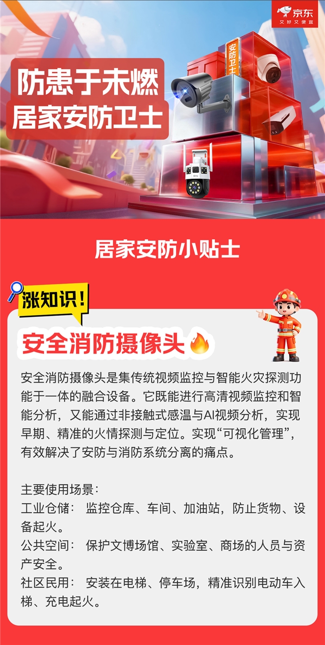 火灾防控,重在从日常做起、从细节做起。唯有将安全意识融入生活习惯,辅以科技手段弥补人为疏忽,才能有效降低火灾风险。即日起,用户可上京东搜索“居家安防卫士”直达会场,配齐家庭与企业所需的安防设备。用科技守护安全,共同筑起一道“防患于未燃”的智能防线。